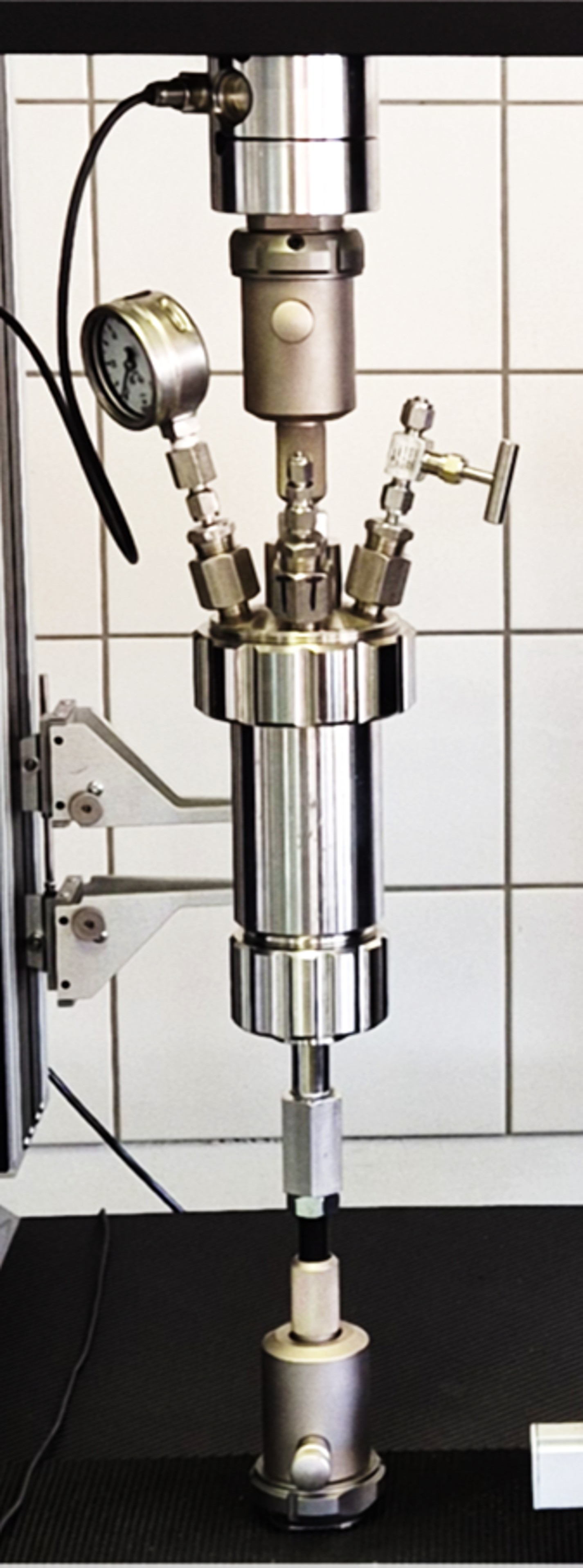 Die H-beladenen Rundzugproben werden unter Wasserstoffdruck dem sogenannten langsamen Zugversuch bei konstanten, auf die Messlänge bezogenen Dehngeschwindigkeiten von 10-6 bis 10-4 s-1 unterzogen. Die abgesenkte Dehnrate verstärkt den Wasserstoff-Effekt. Das Ergebnis wird mit dem mechanisch-technologischen Verhalten unbeladener Proben an Luft verglichen und in Form von Wasserstoffversprödungsindices quantifiziert. Die Atmosphären beim Zugversuch können aus Wasserstoff oder Gemischen mit O2, N2, CO, CO2, NH3, H2S bestehen und Drucke bis 250 bar und Temperaturen bis 200 °C beinhalten. Das IFINKOR verfügt über verschiedene Zugautoklaven und moderne Prüfapparaturen mit Zugkräften bis 100 kN, welche auch für Zugschwellversuche genutzt werden können.